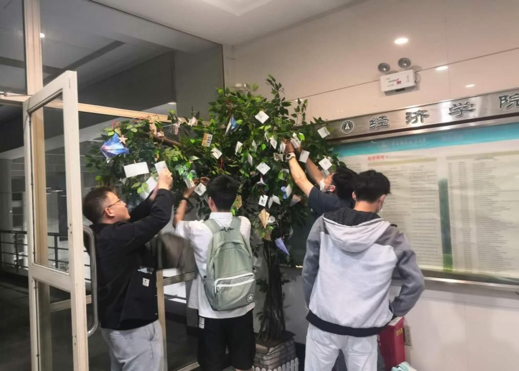 晚八點時,活動進行到第二個環節——放飛對祖國的美好祝福。我們將寫滿祝福的賀卡和紙飛機都掛在了長青樹上,愿我們偉大的祖國像這棵長青樹一樣充滿勃勃生機和希望!