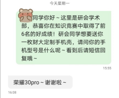 系統根據答題準確率及用時,對參與比賽的同學成績進行在線排名。學術部同學截取有效成績的前六名作為此次成績的優勝成績。10月5日晚,學術部將聯系優勝的六名同學,并給他們送去小禮品。
