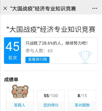 至此偉德體育官網研究生會學術部舉辦的“大國戰疫”經濟專業在線知識競賽圓滿結束。