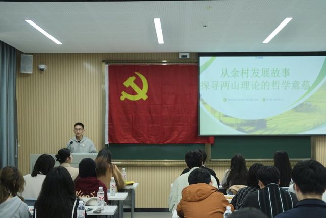 隨后,來自華中農業大學研究生宣講團的章欽同學以《從余村發展故事探尋兩山理論的哲學意蘊》為題,對黨的二十大報告進行“精讀精講”。通過余村的發展故事,我們可以深刻感受到“兩山理論”對于推動生態文明建設、實現可持續發展的重要意義。