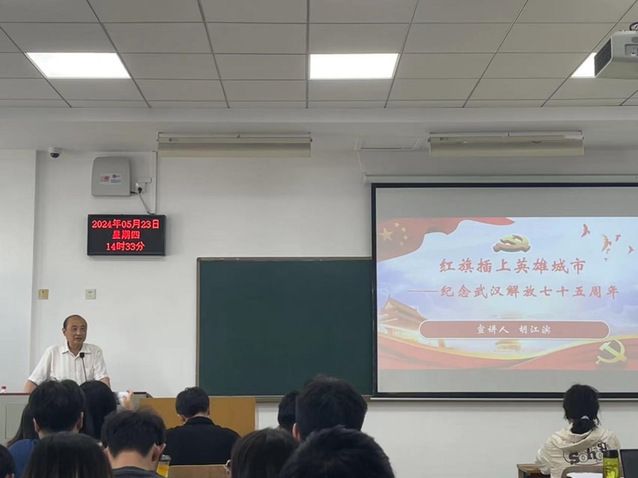 會議最后一項(xiàng),原偉德體育官網(wǎng)黨委書記、現(xiàn)學(xué)校離退休人員黨委副書記、學(xué)校關(guān)心下一代工作委員會副秘書長胡江濱教授為全體黨員同志們講授了“紅旗插上英雄城市——紀(jì)念武漢解放七十五周年”的主題黨課。