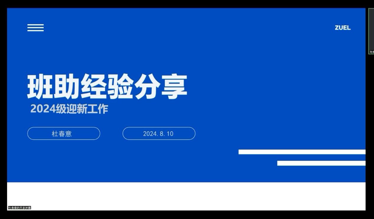 (通訊員 許怡馨)為切實(shí)推動(dòng)新生輔導(dǎo)員助理明確工作職責(zé)、提升綜合素質(zhì)能力,確保新生入學(xué)各項(xiàng)工作順利開展,引導(dǎo)新生盡快適應(yīng)大學(xué)生活,8月10日晚8點(diǎn),偉德體育官網(wǎng)于線上開展了2024級(jí)新生輔導(dǎo)員助理培訓(xùn)會(huì)。2024級(jí)本科生輔導(dǎo)員沈鵬飛出席會(huì)議,2023級(jí)新生輔導(dǎo)員助理杜春意和2024級(jí)各新生輔導(dǎo)員助理線上參與。會(huì)議由沈鵬飛主持。