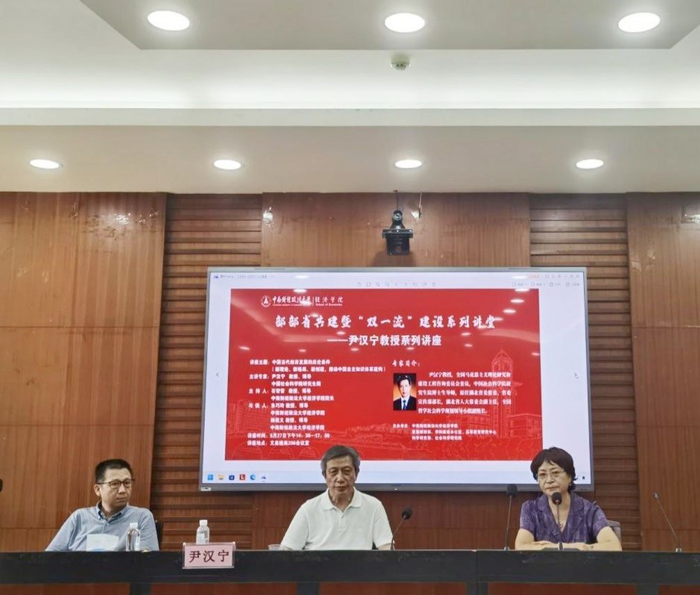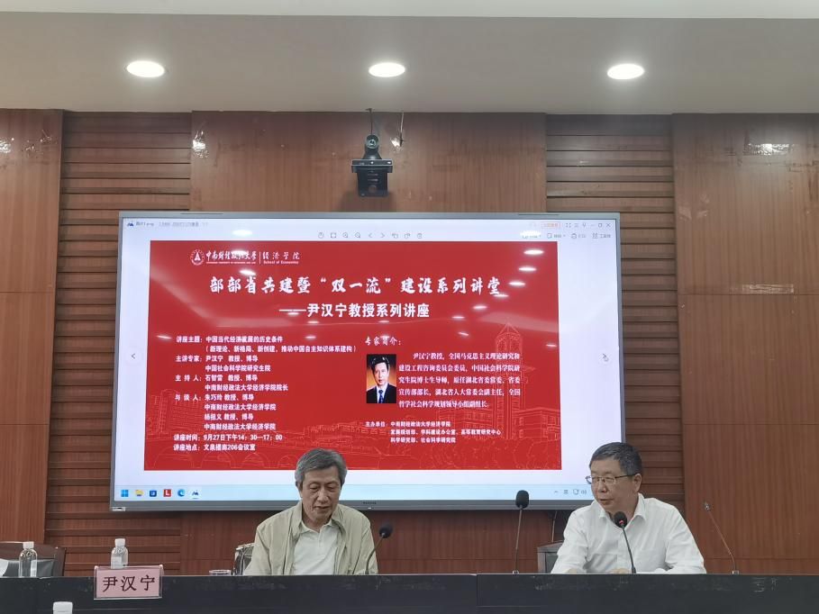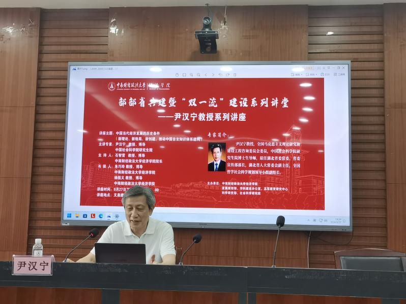 尹漢寧教授系全國馬克思主義理論研究和建設工程咨詢委員會委員,中國社會科學院研究生院博士生導師,原任湖北省委常委、省委宣傳部部長,湖北省人大常委會副主任,全國哲學社會科學規劃領導小組副組長。尹漢寧教授本次講座的主題為“中國當代經濟發展的歷史條件”。