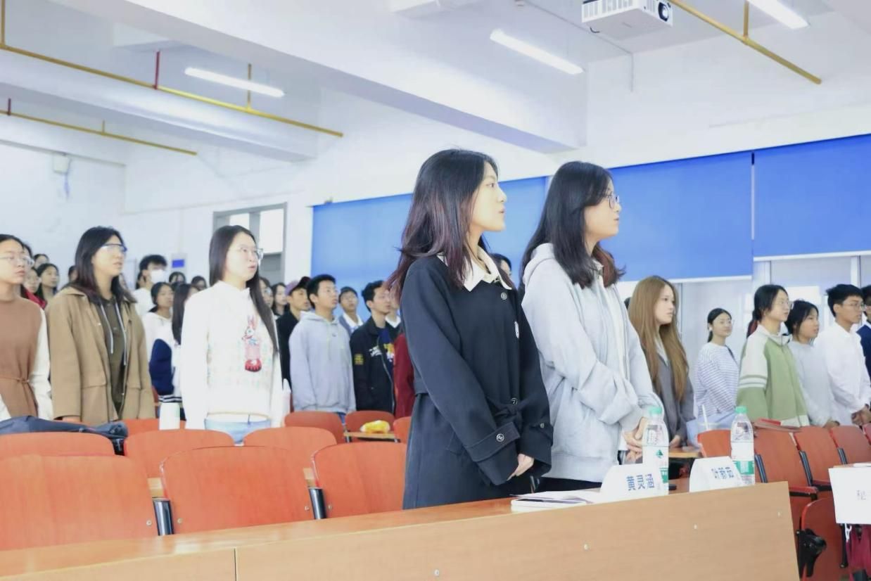例會伊始,全體成員起立奏唱共青團團歌,洪亮的歌聲展現了我院學子的青春激情與堅定信仰。