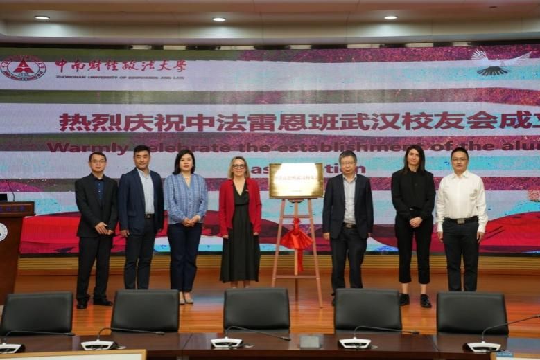 在副校長鄒進文教授以及各位領(lǐng)導(dǎo)的牽頭下,進行了盛大的揭牌儀式,宣告中法雷恩班武漢校友會正式成立。
