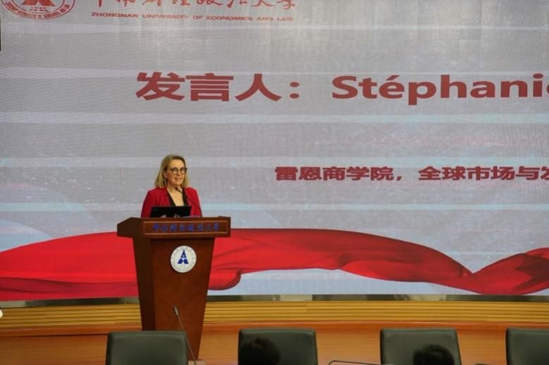 副校長鄒進文教授的發(fā)言揭開了本次慶典的序幕,鄒校長不僅展示了雷恩班十年來的累累碩果,而且高度贊揚雷恩班作為國際化教育的舞臺,培養(yǎng)了大批擁有國際視野的優(yōu)秀人才。雷恩商學(xué)院全球市場與發(fā)展高級總監(jiān)Stephanie HIAUMET女士致辭,講述了中法雷恩班的教學(xué)優(yōu)勢,并對兩校合作表示了高度認可。中南財經(jīng)政法大學(xué)校友工作與社會合作部部長笪寧發(fā)言,表達了對未來雷恩班發(fā)展的無限期許和對中法雷恩班武漢校友會的希冀。